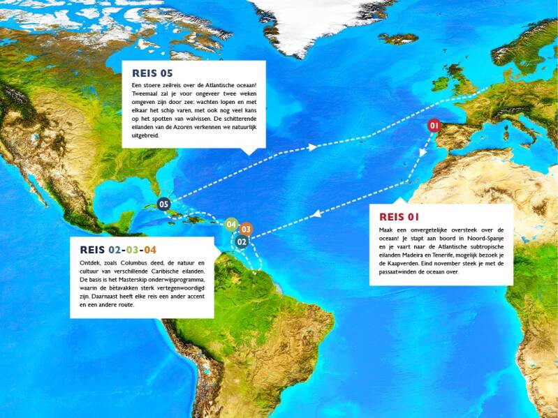 Er zijn 5 verschillende reizen -->